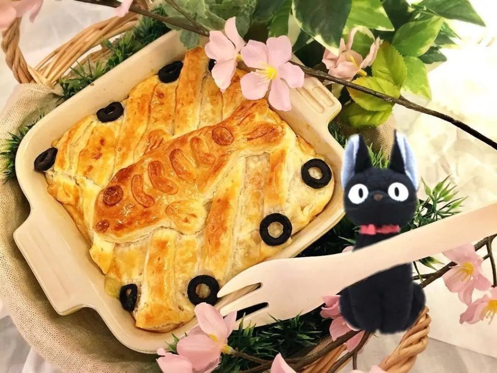 『魔女の宅急便』 ニシンのパイ テイクアウトできます、ご自宅でのパーティーにいかがですか? 25cm×15cm、2,000円 なお、焼窯の調整にキキのお手伝いが必要ですので(⌒∇⌒) 2日前までにご予約下さい