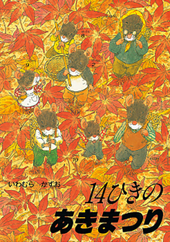 『14ひきのあきまつり』の舞台はすっかり秋の色に染まった森の中。おかあさんたちが木の実を採りに行っている間、子どもたちとおばあちゃんはかくれんぼをします。